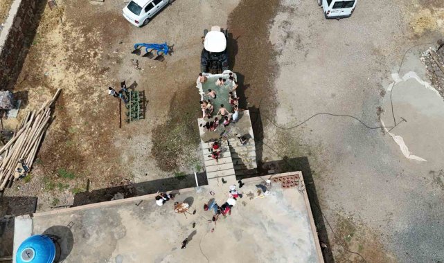 İshak Akkuş ise, gün olup 45-50 dereceye kadar hissettiklerini ifade ederek, "Sıcak, o kadar sıcak, dayanamıyoruz, dışarı bile çıkarmıyoruz. Çocuklar için toprak eşiyoruz, suyu biriktirip çocuklar giriyor. Leğenler var, çocuklar bu şekilde serinliyorlar" diye konuştu.
