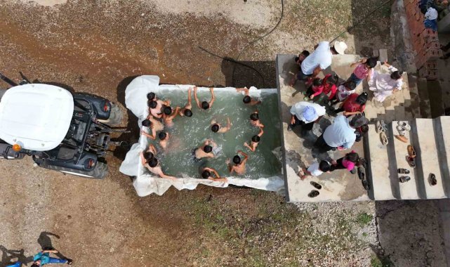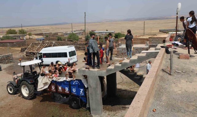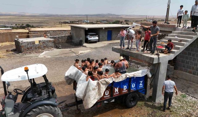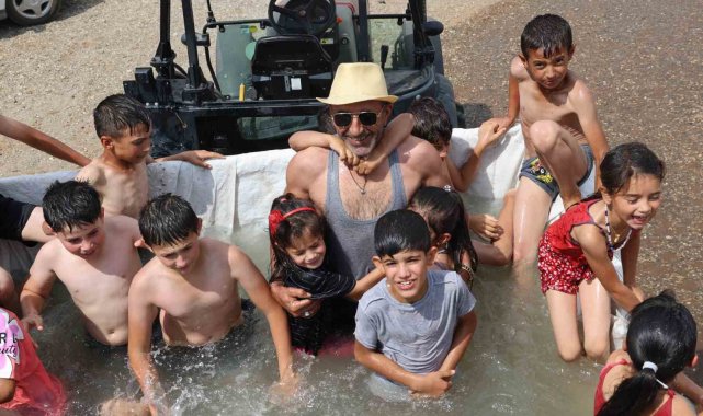 Akkuş, çocuklar duyunca her gün başka köylerden de geldiğini kaydederek, "Çocuklar için her gün bu şekilde yapıyoruz. Minibüsümle yakın köylere gidip çocukları getirdim. Serinlesinler diye. Çocuklar sevinsin, serinlesin, mutlu olsun diye kendi imkanlarımızla yaptık" şeklinde konuştu.