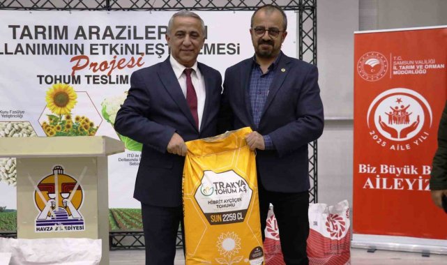 Havza'da 350 çiftçiye yüzde 70 hibeli ayçiçeği tohumu desteği