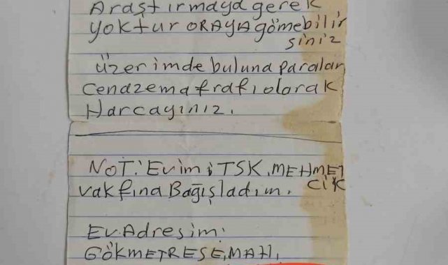 Hayatını kaybeden hastanın üstündeki notta vasiyeti çıktı: Evini ve paralarını Mehmetçik Vakfı'na bağışladı