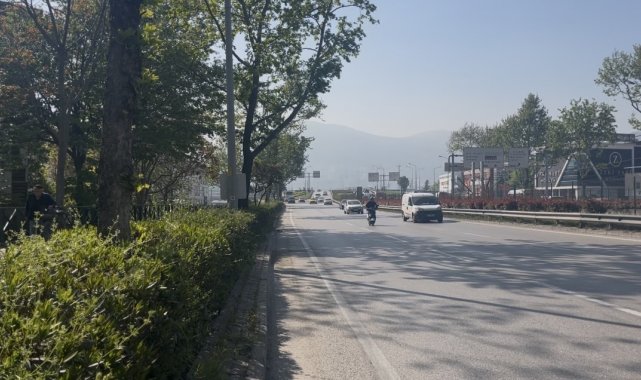 Bursa'da sabah saatlerinde sol şeritte seyir halindeyken bir anda en sağ şeride geçip aydınlatma direğine çarpan motosiklet sürücüsünün kaza anı ortaya çıktı.