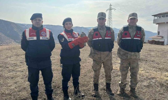 Bingöl'de jandarma ekiplerince bulunan yaralı atmaca, Doğa Koruma ve Milli Parklar Müdürlüğü ekiplerine teslim edildi.
