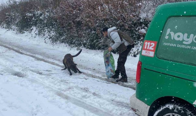 Zonguldak Emniyet Müdürlüğü'ne bağlı HAYDİ ekibi, il merkezindeki mahallelerde zorlu kış şartları nedeniyle sokak hayvanlarına mama dağıttı.