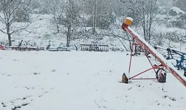 Tekirdağ'ın Hayrabolu ilçesinin yüksek kesimlerinde kar yağışı sonrası yerler beyaz örtüyle kaplandı.