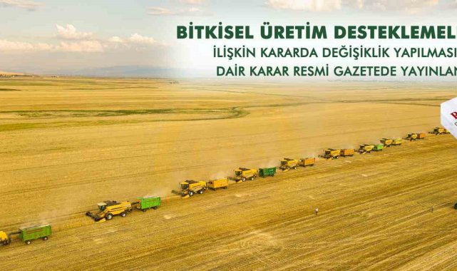 2025-2027 yıllarında yapılacak bitkisel üretime yönelik desteklemeler ile diğer bazı tarımsal desteklemelere ilişkin kararda değişiklik yapılmasına dair Cumhurbaşkanı kararı da Resmi Gazete'de yayımlandı. Karara göre bitkisel üretim desteklerine ilişkin düzenlemeler ise 1 Ocak 2026'dan itibaren yürürlüğe girecek.