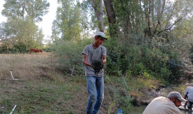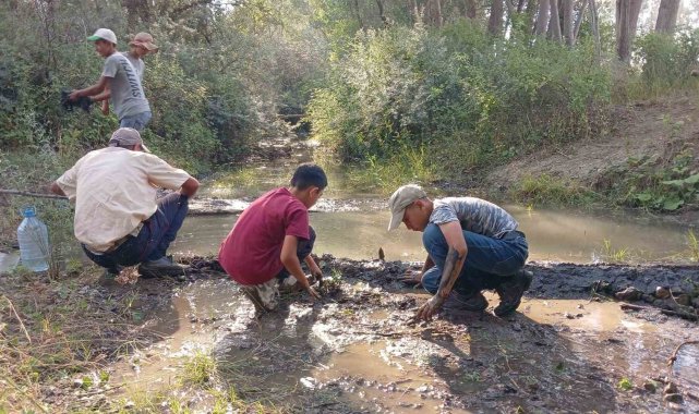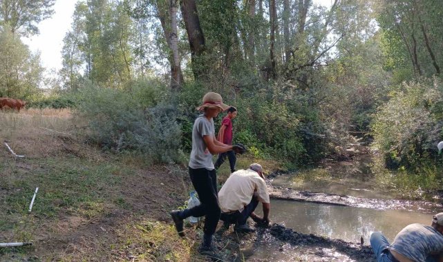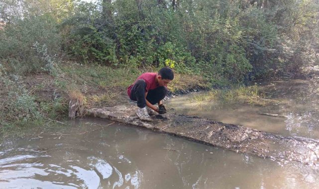 Yozgat'ta çocuklar, besledikleri hayvanlar su içebilsin diye elleriyle gölet yaptı.