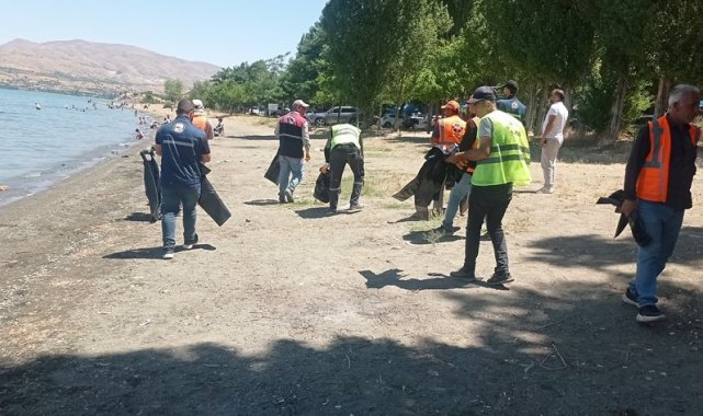 Elazığ'ın Sivrice ilçesinde bulunan Hazar gölü etrafında 40 tona yakın atık malzeme toplandı.