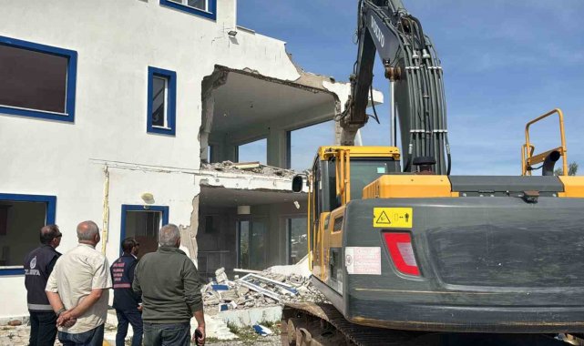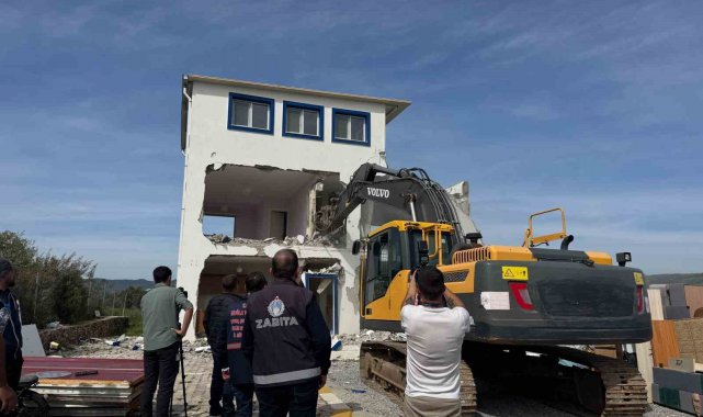 Muğla'nın Bodrum ilçesinde hazine arazisine yapılan 3 katlı kaçak villa ekipler tarafından yıkıldı.