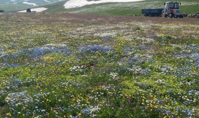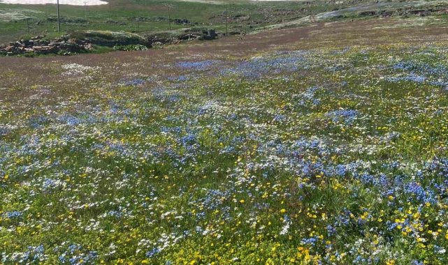 Yaz geldi, havalar ısındı. Ama Ardahan'da iki mevsim aynı anda yaşanıyor. Ardahan'daki yaylalarda baharda açan çiçeklerle karlar aynı anda görüntülendi.