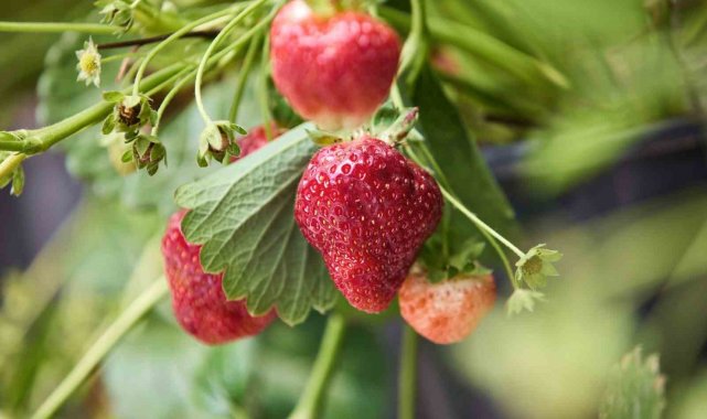 Katı Atık Düzenli Depolama Sahası'nda kurulan ve burada üretilen metan gazından elde edilen elektrikle ısıtılan çilek serası, topraksız tarım teknikleriyle üretim yapıyor. Hindistan cevizi kabuğunda yetiştirilen çilekler, özel LED aydınlatmalarla fotosentez süresi artırılarak yıllık 8 ton üretiliyor.