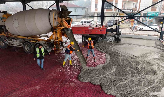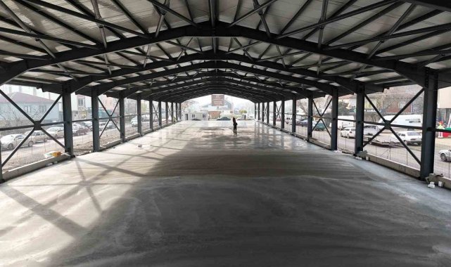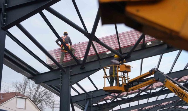 Belediyenin öz kaynaklarıyla finanse edilen çelik konstrüksiyon yapının çatısı tamamen sandviç panelle kapatılıyor. Zeminde ise beton dökme çalışmaları devam ediyor.