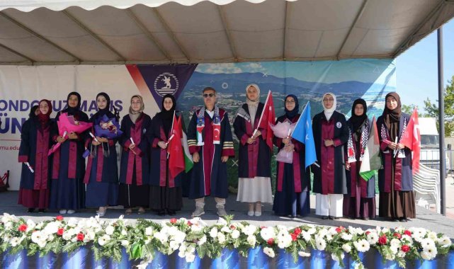 Ondokuz Mayıs Üniversitesi (OMÜ) İlahiyat Fakültesi 2024-2025 akademik yılı mezuniyet töreni ile 216 mezununu uğurladı. OMÜ Yaşam Merkezi'nde gerçekleşen 39. dönem mezuniyet töreni; saygı duruşu ve İstiklal Marşı ile başladı, daha sonra Kur'an-ı Kerim tilavetiyle devam etti. Mezuniyet töreninde, mezun olan öğrencilere başarı belgeleri verildi. Fakülteden mezun olan Sümeyye Bulut, başarısıyla dikkat çekti. Bulut hem fakülteden birinci olarak mezun oldu hem de hafızlığı bitirdi.
