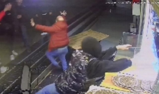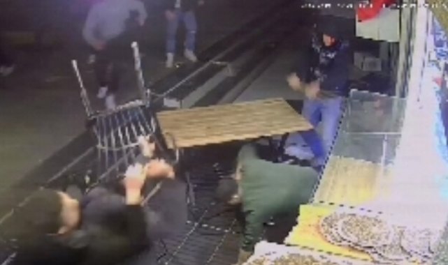 Bursa'nın Osmangazi ilçesi Çarşamba Mahallesinde bir grup genç ile esnaf tartışmaya başladı. Tartışmanın kısa sürede büyümesiyle öfkeli taraflar bir anda birbirine vurmaya başladı. Kavgaya taraflarında girmesiyle sandalye ve masalar havada uçuşurken, saldırganların biri kavgayı bahane edip tezgahtaki ürünleri çaldı. 2 kişinin hafif yaralandığı kavga anı kameraya yansırken, polis ekiplerinin gelmesiyle kavga son buldu.