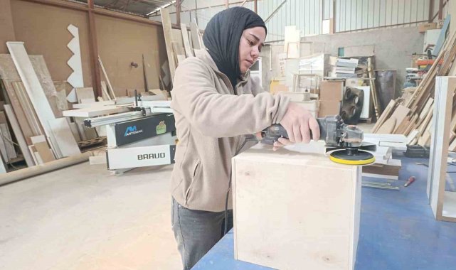 Yaklaşık 5 yıl önce çırak olarak başladığı mobilya sektöründe kendini geliştiren genç kadın, bugün ustalık yaparak hem ailesine katkı sağlıyor hem de kadınların her alanda başarılı olabileceğini gösteriyor.