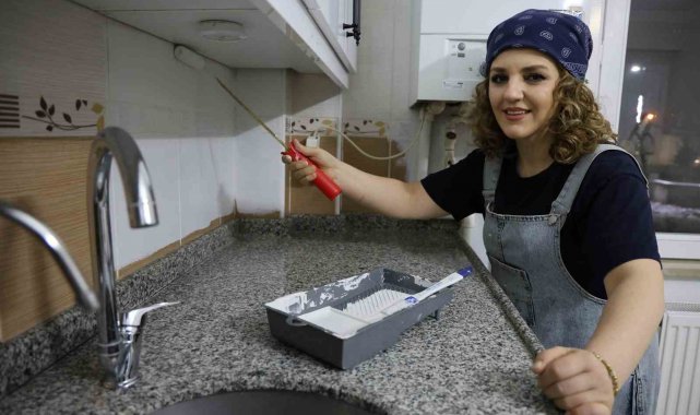 Sivas'ta kendi evininin mutfağını boyayarak adım attığı boyacılığı, kazandığı tecrübelerle mesleğe dönüştüren Gökçek, boyadığı yaklaşık 400 evle erkek ustalara taş çıkarttıyor.