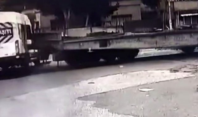 Gaziantep'in İslahiye ilçesinde hemzemin geçitten geçen okul servisine tren çarptı. Kaza anı güvenlik kamerasına yansırken servisin boş olması faciayı önledi.