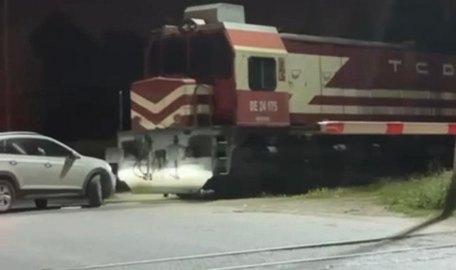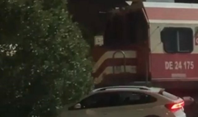 İzmir'in Konak ilçesinde, hemzemin geçitte otomobil ile yük treninin çarpıştığı kaza anları cep telefonu kamerasına anbean yansıdı.