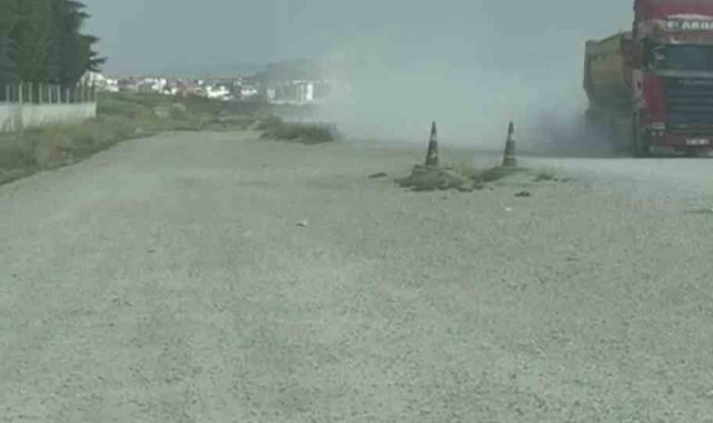 Eskişehir'de çevre sakinlerinin şikayetini iletmesine rağmen asfalt yapılmadığı belirtilen caddede araçların kaldırdığı toz bulutu rahatsızlığa sebebiyet veriyor.