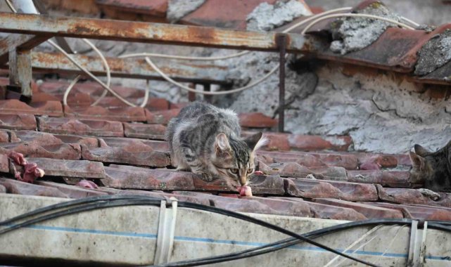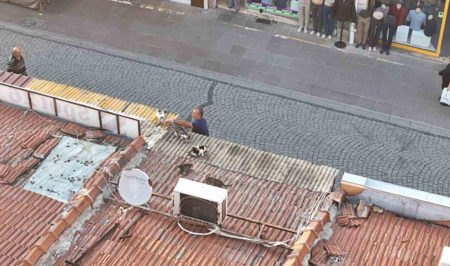 Eskişehir'de esnaflık yapan Mesut Turan, her gün merdivene çıkıp çatıda yaşayan kedileri besleyerek cebinden aylık 15 bin TL harcıyor.