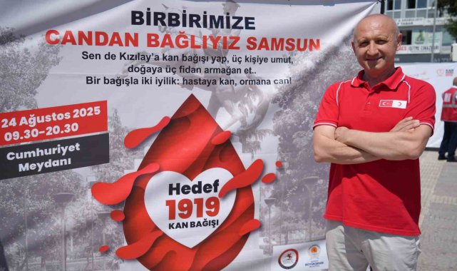 Samsun'da, "Birbirimize Candan Bağlıyız, Hedef 1919 Kan Bağışı Kampanyası"nda bağışlanan her ünite kan, 3 kişiye yaşam umudu olurken, ormanda da 3'er adet fidana dönüşüyor.