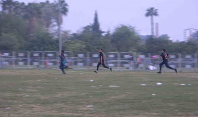 Adana'da devam eden Portakal Çiçeği Karnavalı'na gelenler konser alanının kapısının açılmasıyla birlikte ön sırayı kapmak için kıyasıya mücadele etti. O anlar maraton koşanları akla getirdi.
