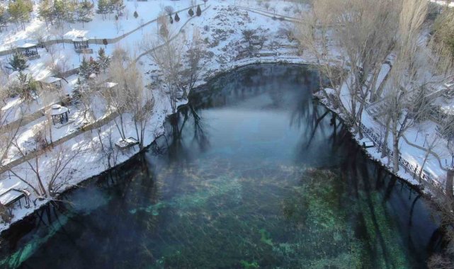 Sibirya soğuklarının yaşandığı Sivas'ta suya dair ne varsa dondu, donmayan tek göl, bozkırın nazar boncuğu Gökpınar gölü oldu.