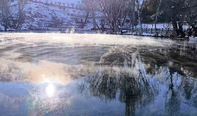 Suya dair ne varsa donan Sivas'ta donmayan tek yer Gürün ilçesindeki Gökpınar gölü oldu. Turkuaz renginden dolayı 'bozkırın nazar boncuğu' olarak ta adlandırılan göl, donmadığı gibi adeta kaynıyor. Dünyanın en berrak göllerinden birisi olan Gökpınar gölü, zemininden kaynayan 17 derece sıcaklıkta ki selenyumlu suyla oluşuyor. Yaz ve kış aylarında su sıcaklığı değişmeyen göl bu nedenle hiç donmuyor. 17 derecede ki göl sunu yüzeye çıktıktan sonra sıfırın altında 30 dereceyi bulan soğuk havayla buluşunca adeta kaynarmışçasına buhar oluşturuyor. Gölün yüzeyinde süzülen su buharı ise izleyenleri mest ediyor.