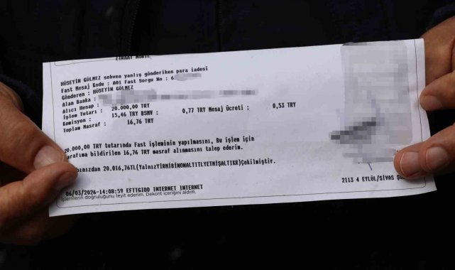 Sivas'ta 68 yaşındaki Hüseyin Gülmez, banka hesabına yanlışlıkla gelen parayı geri gönderebilmek için banka şubesine gitti.