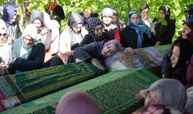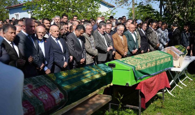 Samsun'daki heyelan faciasında hayatını kaybeden baba ile iki çocuğu, gözyaşları içinde son yolculuklarına uğurlandı.