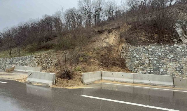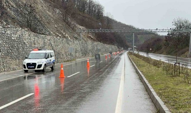 Düzce'de sağanak yağışlar Gölyaka ilçe yolunda heyelana sebebiyet verdi. Yol tek şeritten verilirken, heyelan kaldırma çalışmalarına başlandı.