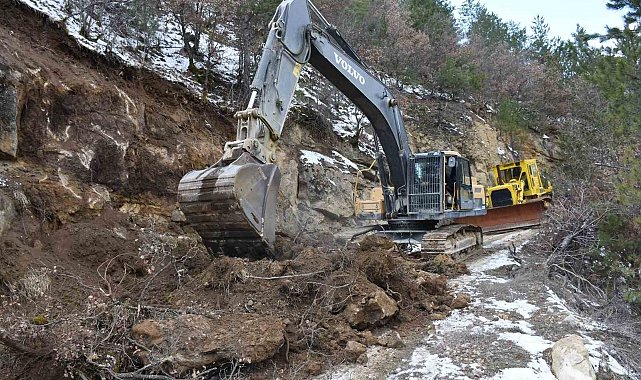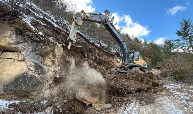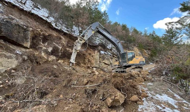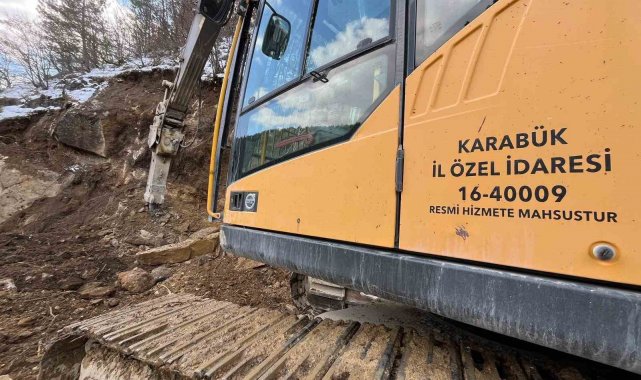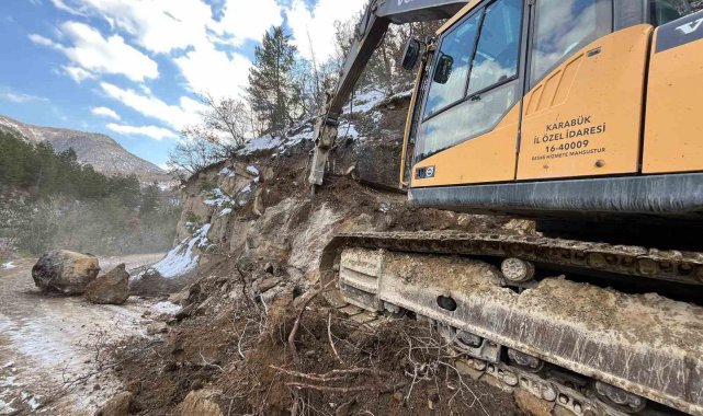 Karabük'ün Ovacık ilçesinde heyelan nedeniyle kapanan köy yolunun yeniden ulaşıma açılması için çalışma başlatıldı.