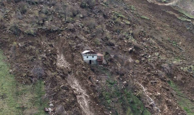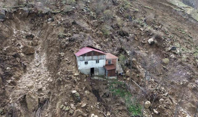 Heyelanın ortasında kalan ev facianın boyutunu ortaya çıkardı