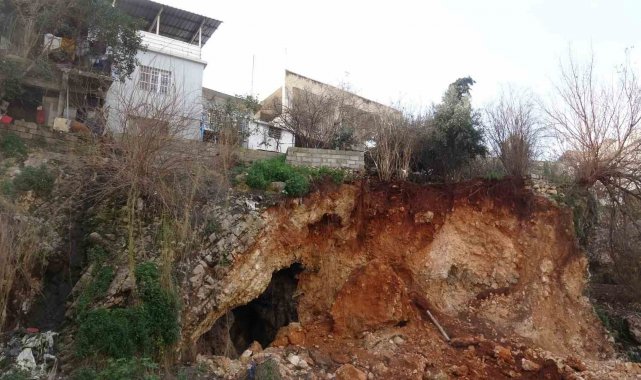 Hatay'da şiddetli yağışla birlikte yaşanan heyelanın ardından evlerin altında yer alan mağara açığa çıktı. Mahalle sakinleri mağaranın geçmişte de bilindiğini fakat heyelanla birlikte önünün açıldığını söylediler.