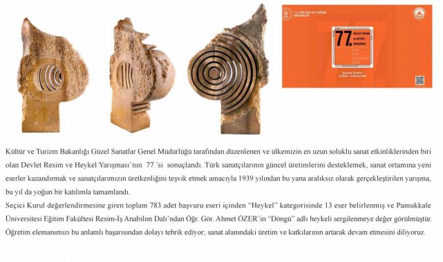 DENİZLİ (İHA) – Denizli'de çalışmalarını sürdüren öğretim görevlisi Ahmet Özer'in "Döngü" adlı heykel çalışması, 77. Devlet Resim ve Heykel Yarışmasında sergilenmeye değer görüldü.