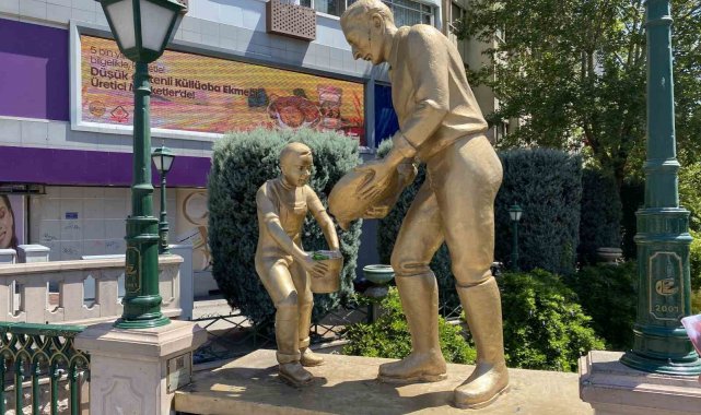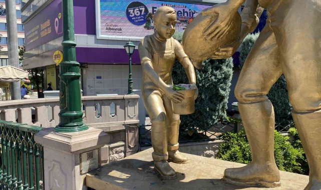 Eskişehir'de kent merkezindeki elinde kova olan çocuk heykelinin kovasına atılan çöpler nedeniyle ilginç bir görüntü ortaya çıktı.