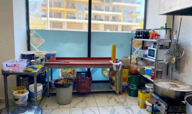 Alanya Belediyesi Zabıta Müdürlüğü ekiplerinin Mahmutlar Mahallesi'nde gerçekleştirdiği denetimler sırasında, hijyen kurallarına uymadan yemek imalatı yaptığı tespit edilen ruhsatsız işletme mühürlendi. İşletmede bulunan bozulmuş et ürünleri ve yemekler imha edilirken, yasal işlem başlatıldı.