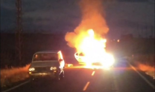 Hilvan'da alev alan otomobil bomba gibi patladı