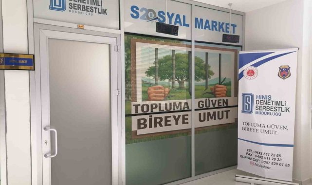 Erzurum'un Hınıs ilçesinde yükümlüler ve ailelerinin temel ihtiyaçlarını karşılamaya yönelik olarak Hınıs Cumhuriyet Başsavcısı Yusuf Tuğrul'un destekleriyle hayata geçirilen sosyal market faaliyete başladı.