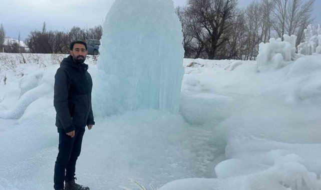 Hınıs'ta 4 metrelik buz kütlesi dikkat çekti