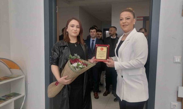 Törende kütüphanenin yapılmasında katkılarından dolayı Savcı Yusuf Tuğrul'un eşi Demet Okur Tuğrul'a ve Hınıs Belediye Başkanı Serdal Şan'a plaket takdim edildi.