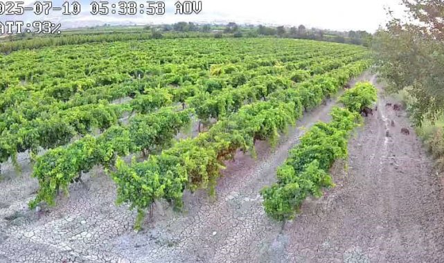 Denizli'de üzüm bağlarını hırsızlardan korumak için kamera sistemi kuran çiftçi Adem Erdoğan, sabah saatlerinde görüntülerinde üzüm bağına domuz sürüsünün girdiğini gördü.