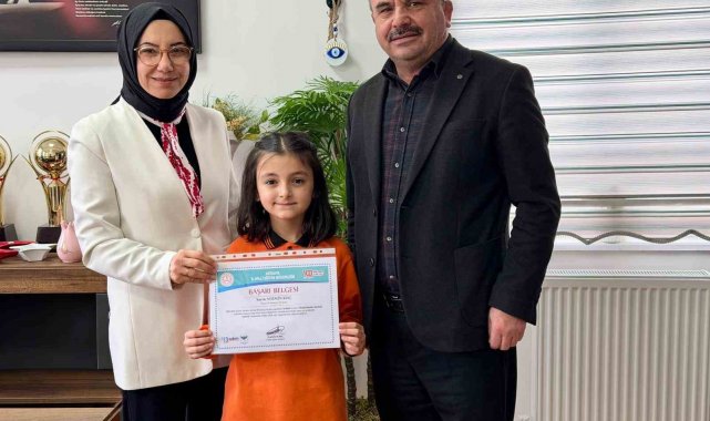 Müdür Pelin Solak, elde edilen başarıdan dolayı öğrenci Nermin Koç'u ve Sınıf Öğretmeni Semra Bülbül'ü tebrik ederek, başarılarının devamını diledi.