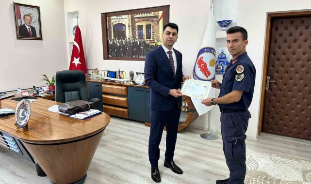 Hisarcık Kaymakamı Bahar'dan, İlçe Jandarma Komutanı Korkut ve personele başarı belgesi