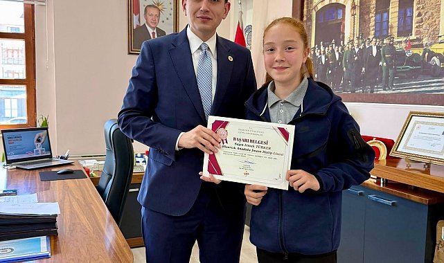 Kaymakam Atam, 7. sınıf öğrencisi Irmak Türker'i makamında kabul ederek başarısından dolayı tebrik etti. Ziyarette, genç sporcuya başarı belgesi ve çeşitli hediyeler takdim edildi.