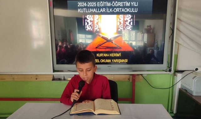 Hisarcık İlçe Milli Eğitim Müdürlüğünün "Değerlerim ile Büyüyorum" projesi çerçevesinde, Kutluhallar İlk-Ortaokulu'ndaki öğrenciler arasında Kur'an-ı Kerimi güzel okuma yarışması düzenlendi.