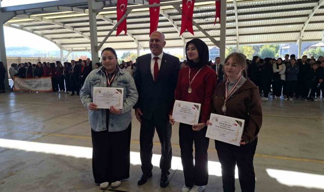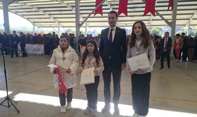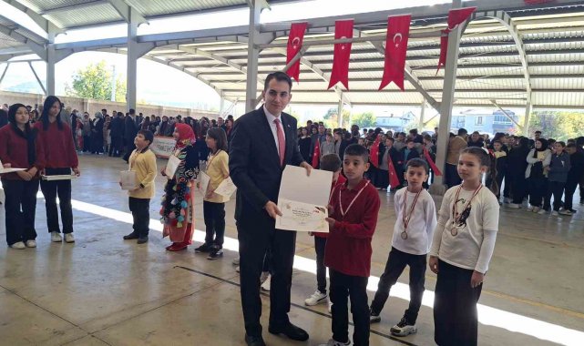 Kütahya'nın Hisarcık ilçesinde Cumhuriyet Bayramı etkinlikleri çerçevesinde düzenlenen yarışmalarda dereceye giren öğrenciler ödüllendirildi.
