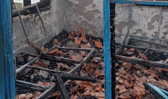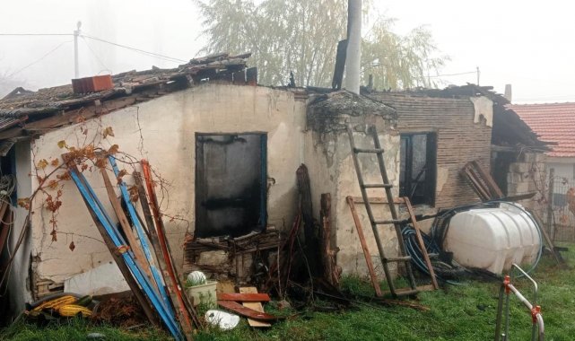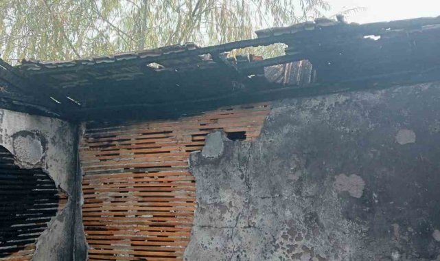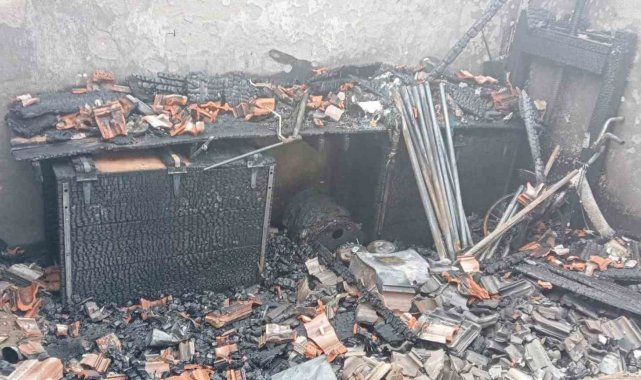Yangın nedeniyle tek katlı deprem konutu kullanılmaz hale geldi.