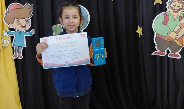 Toplam 18 öğrencinin öğrenim gördüğü 2-A sınıfında 12 öğrenci, İstiklal Marşı'nın tamamını eksiksiz ve ezbere okuyarak önemli bir başarıya imza attı.