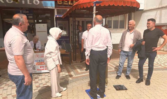 Sağlık Bakanlığı tarafından başlatılan "İdeal Kilonu Öğren, Sağlıklı Yaşa" projesi çerçevesinde Kütahya'nın Hisarcık ilçesinde katılımcıların boy ve kilo ölçümlerini yapılarak vücut kitle indeksi hesaplanıyor.