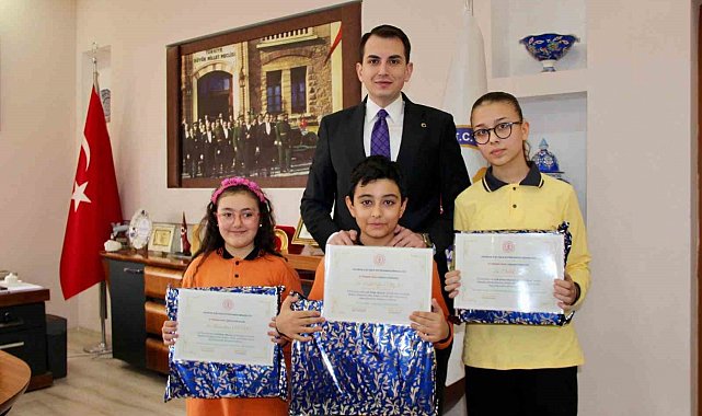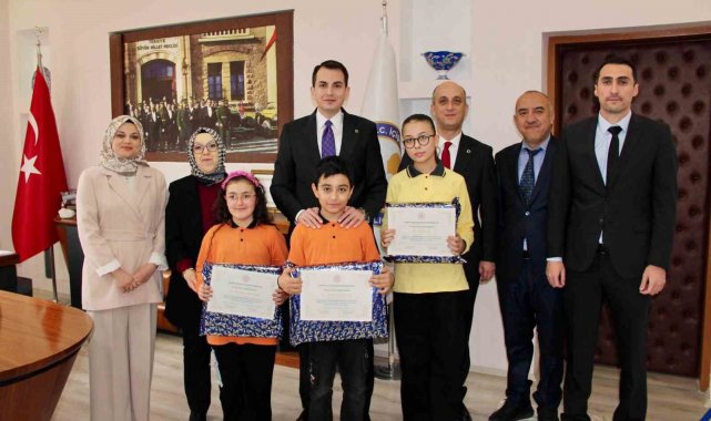 Başarılı öğrencileri makamında kabul eden Kaymakam Erkan Atam, öğrencilere başarı belgesi ve çeşitli ödüller takdim ederek başarılarının devamını diledi.